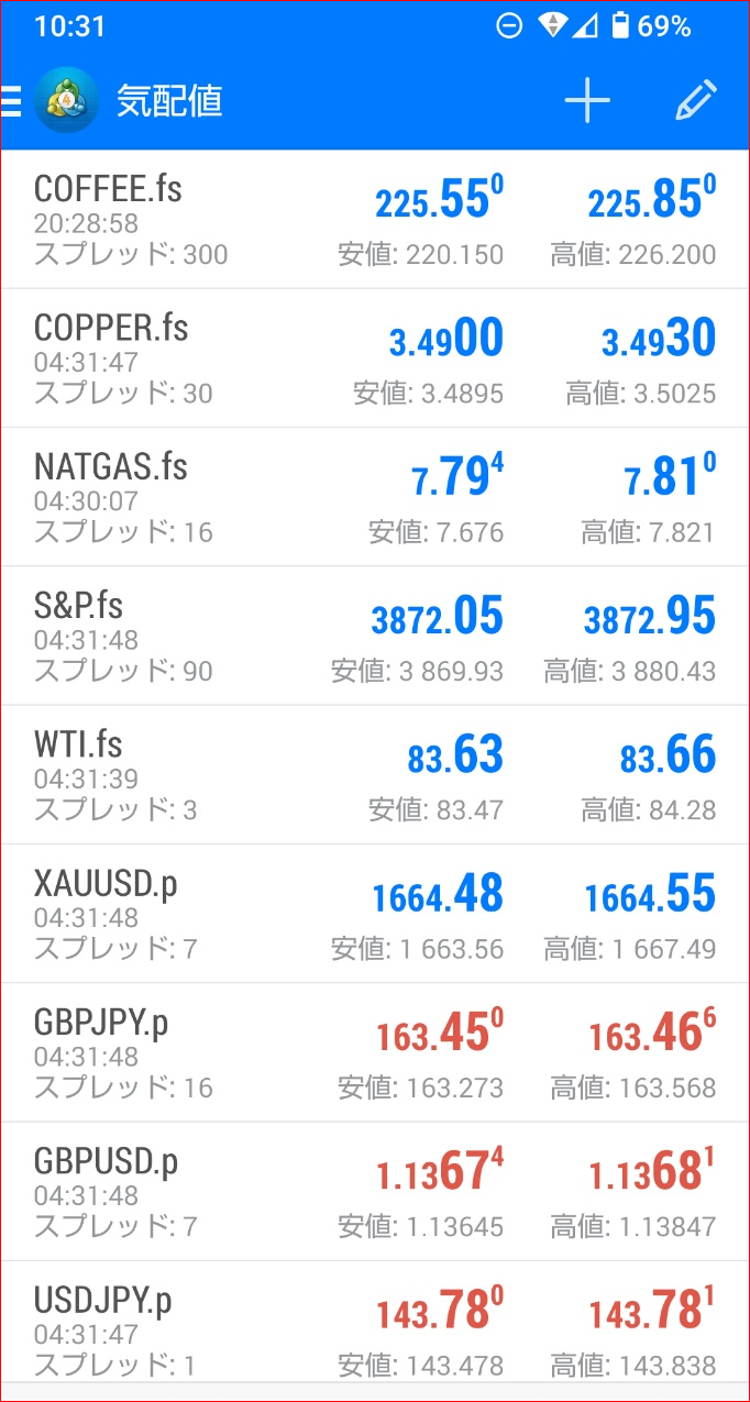 スプレッドの実測も、プレミアム口座の場合、上記のようなスプレッドです。