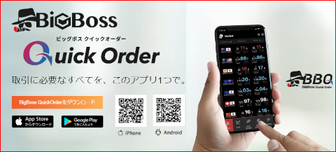 iPhone / Androidのスマートフォンからカンタンに取引が行える直感的なインターフェースと充実の無料分析ツールを備えたすべてのトレーダーに最適なBigBossオリジナル取引アプリとなります。ぜひダウンロードしてみてください。