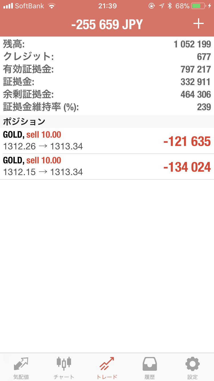 1日で130万円負けました_:(´ཀ`」 ∠):