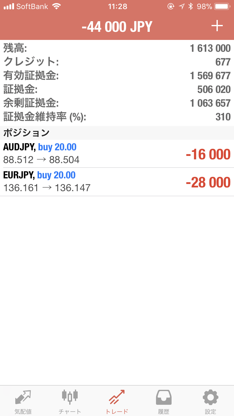 今回はいつもより更にハイレバで行くと決めていた為、80万円を2回入金。(何故かXMでは80万円までしかジャパンネット銀行のVISAデビットは入金が出来ない)