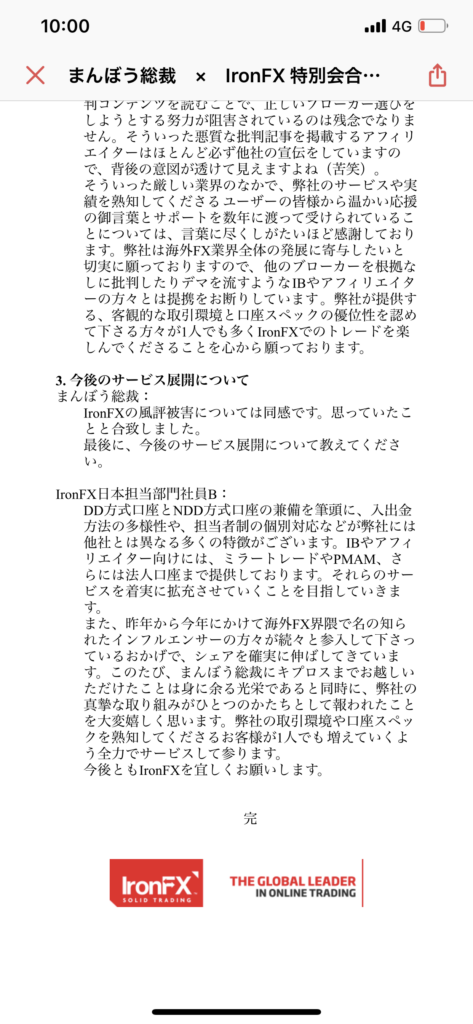 IronFXの風評被害については同感です。思っていたことと合致しました。