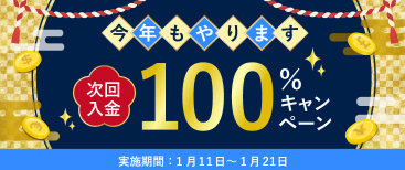 お待ちかね!100%入金ボーナスキャンペーンを実施いたします。