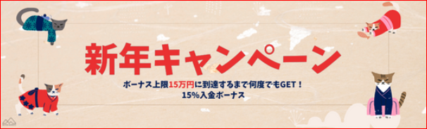 本日1月3日から31日(月末)まで『15%入金ボーナスキャンペーン』を開催いたします。
