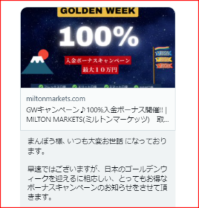 Milton Markets(ミルトンマーケッツ)のGWキャンペーンについて