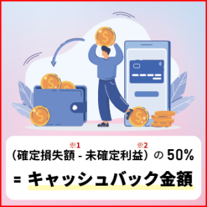 “(純損失額 – 含み益額) x 50% = キャッシュバック額”